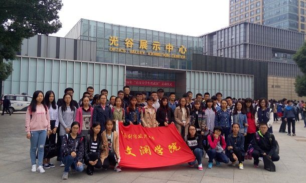 启动仪式前,同学们在讲解员的带领下参观了光谷展示中心,初印象便是一场高科技盛宴,3D的光谷介绍微视频。巨大的立体屏幕占足了大厅的两个墙面,屏幕上炫丽的特效成为全场吸睛的焦点,高速移动的彩色光点令人产生站立不稳的眩晕,武汉光谷的立体模拟图逼真到仿佛身临其境,凌空俯视光谷全景。接下来,讲解员引领着参观光谷展示中心,几步一停,详细具体地介绍光谷近年来的技术创新成果。在光谷,诞生了我国第一根光纤,第一个光传输系统,首台万瓦光纤激光器,全球领先的超大容量、超高速率、超长距离光通信传输技术,全球领先的生物质气化合成液体燃料技术……对于先进的技术和领先的成就,同学们纷纷表示震撼和敬佩。百万大学生看武汉,看到的是大武汉的创新精神和尖端科技。