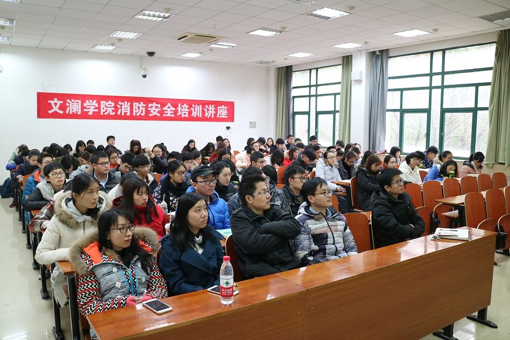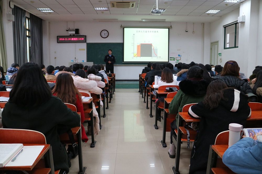 2016年11月24日下午2点30分,麻豆视频 消防安全知识讲座在文波楼210教室举行。湖北省消防协会科普宣教中心林帅教员受邀向麻豆视频 14级、15级、16级全体同学宣讲消防安全知识。麻豆视频 团总书记余利老师和部分教师代表参加了此次讲座。