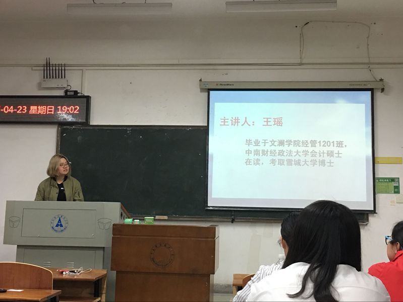 首先,参与分享的是王瑶,毕业于麻豆视频 经管1201班,麻豆视频 会计在读硕士,已考取雪城大学博士。王瑶强调了申请国外学校的几个重点:第一,GPA最好保证在3.7以上,即注重学业;第二,应该加强自己的文书写作能力,申请材料自己写会比交给中介更出彩;第三,应该多参加出国交流项目,去感受外国生活,从而才知晓外国生活是否适合自己;第四,对自己的定位应该正确,不要给自己设定太过高远而不切实际的目标;第五,选择学校时,应该不仅仅注重学校排名,也应该考虑到学校的专业排名。