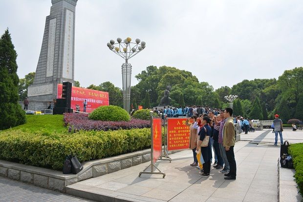 在黄麻起义和鄂豫皖苏区革命烈士纪念碑前,全体党员面向党旗,庄严宣誓,重温入党誓词。在黄麻起义和鄂豫皖苏区革命历史纪念馆内,党员们认真了解了红安革命先烈的英雄事迹,大量的真实照片和革命遗物展现了鄂豫皖革命根据地“英雄的山——英雄的人民——英雄的业绩——英雄的精神”,党员们一边参观一边交流,感动于先烈为人民利益不怕牺牲的大无畏精神,感慨于先烈在恶劣环境中英勇奋斗的英雄气概。