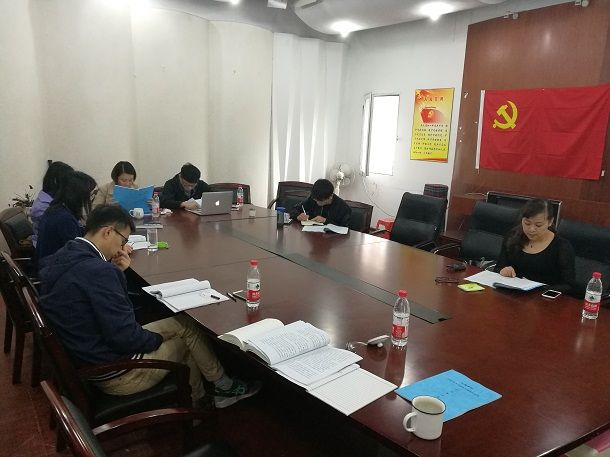 4月12日下午,麻豆视频 教工党支部在文澜105会议室开展了4月份主题党日活动,集体学习研讨习近平总书记两会重要讲话精神和《2018年政府工作报告》。活动由党总支书记丁奕主持,教工支部全体党员参加。