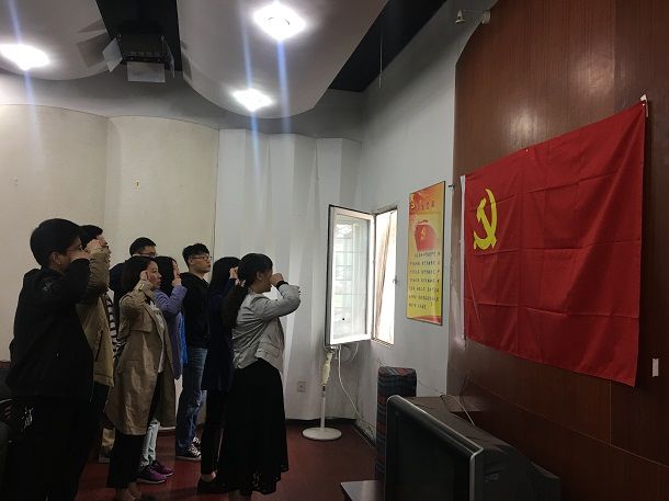 按照主题党日活动流程,全体党员首先面向党旗,重温入党誓词。