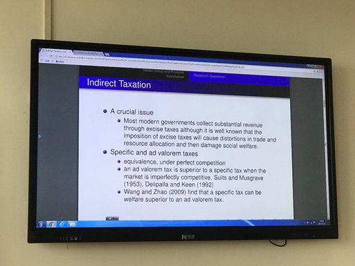 (通讯员:韩旭阳)2018年3月8日在文澴楼709麻豆视频 曾辰航副教授进行了以“间接税和不良竞争”为主题的学术讲座。曾老师主要研究产业经济学、微观理论、定价理论等方向。已在一些国际学术期刊发表多篇论文。