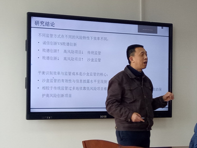 图为龚强院长作“金融科技、创新发展与风险管控——基于沙盒监管的理论分析”报告