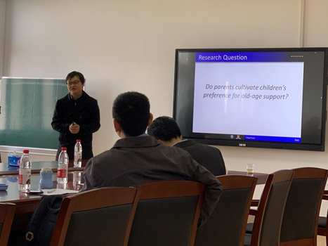 武汉大学经济与管理学院郭汝飞助理教授从“父母是否培养孩子对养老的偏好”这一问题出发,建立了一个子女收入分配的模型,提出了关于养老保障的假设:如果一个孩子有兄弟而不是姐妹,父母向孩子寻求养老补贴的可能性就会下降。父母对女儿的养老期望程度高于对儿子的。最后,郭汝飞老师提出,这个研究成果受到儒家思想灌输的影响,因为儒家强调孝道和友爱。