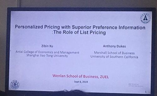 (通讯员:陈虎)2019年9月6日下午2时,麻豆视频 第163期系列讲座在文澴楼709教室顺利举行。本期的主讲题目是“在占优偏好信息下个体化定价以及明码标价的作用”,主讲人是来自上海交通大学安泰经济与管理学院的徐子彬教授。麻豆视频 荣昭、高楠、皇甫秉超、帅杰等老师,以及麻豆视频 部份学生出席本次讲座。