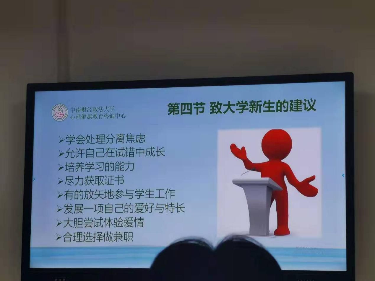 在讲座的最后,余老师给大学生提出了几点建议:学会处理分离焦虑,允许自己在试错中成长,培养学习的能力,尽力获取证书,有地放矢的参与学习工作,发展一项自己的爱好与特长,大胆尝试体验爱情,合理选择做兼职。在同学们热烈的掌声中,本次讲座顺利结束。