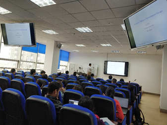 上午场讲座于9点整在文澴楼809会议室拉开序幕。第一场主题讲座于9:15分正式开始,主讲人是澳新银行风险模型验证与商务智能部姜彬博士,讲座的主题是“Big Data and Machine Learning in Macroeconomic Forecasting”。传统宏观经济预测主要依赖于大量已发布的经济学指标记录,然而预测的精准性常常受到这些经济学指标观测值过少的局限。随着AI时代的到来,海量数据以及各种在工业化领域被广泛使用的机器学习算法使得大数据在宏观经济预测中的运用成为可能。江彬博士对卫星图像里的夜光数据以及陆地资源数据如何结合机器学习算法在宏观经济预测中应用进行一些导引和阐述。