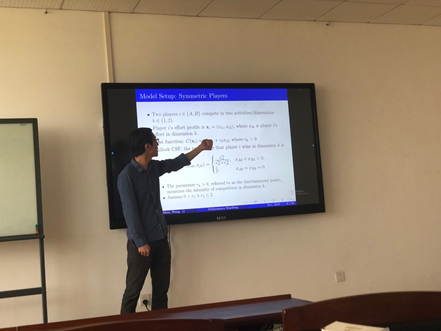 讲座展示的文章主要涉及最优劳动力合同设置问题,全文建立在一个相对绩效评价的框架下,因为这种竞赛性质的评价体系具有更简单地衡量绩效,有效避免暗箱操作风险同时分散参与者风险等优势。文章在前人对于单一代理人在多项目中的最优表现的基础上引入两个参与者,分别在能力对称和非对称两种情形下讨论多项目捆绑均衡策略。在该框架下组织者设定奖励机制:可以选择单一维度分别发奖、多维度捆绑发唯一奖或多维度捆绑对全部最优者给予额外奖励三种情形。