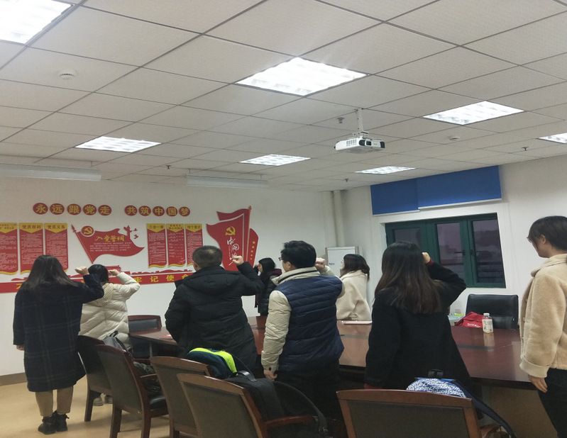 首先,全体参会党员重温入党誓词。党支部书记程余利老师总结了党支部及支部委员会工作情况。