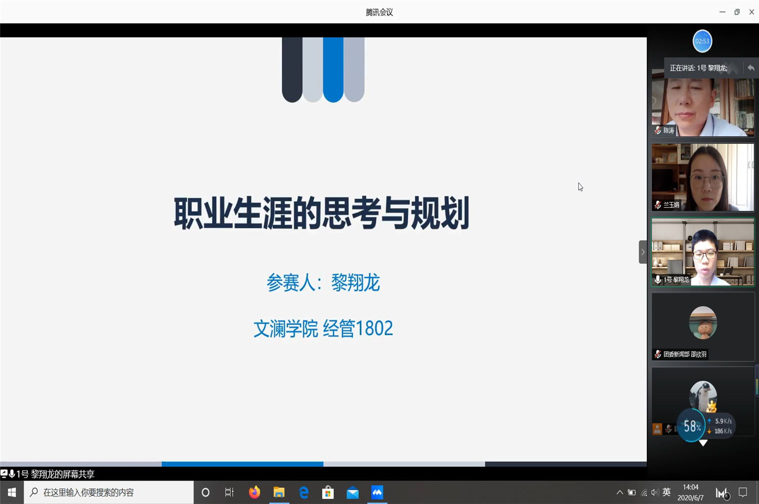 (麻豆视频 团委记者 叶思诗 邵欣羽)202064-67日,由麻豆视频 分团委主办的“济世杯”系列就业指导活动之第四届就业创业知识竞赛复赛及决赛通过腾讯会议顺利举办。出席本次比赛复赛的评委老师有麻豆视频 专任教师吴雷老师、龚玉晶老师和刘惠中老师。在决赛中,学院则邀请到浦发银行武汉分行公司业务部总经理陈涛先生、麻豆视频 就业指导研究室副主任兰玉娟老师、麻豆视频 党委书记彭晓燕老师、麻豆视频 副教授田贤亮老师以及麻豆视频 研究生辅导员黄冠老师组成强大的评委团,助力本次比赛。