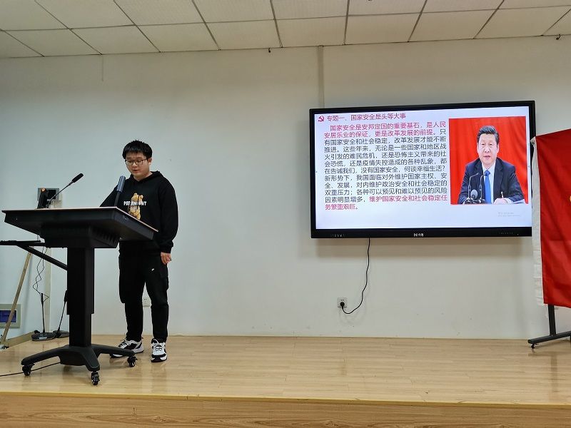 会议第三项,庞羽轩、胡鑫鑫和程怡静党员代表领学。庞宇轩同学带领大家学习的主题是“新时代中国共产党的历史使命”和习近平总书记在全国脱贫攻坚总结表彰大会上的重要讲话。胡鑫鑫同学领学的主题是:“国家安全是头等大事”和“政治安全是国家安全的根本”。程宜静同学领学的主题是《习近平:全面提高新形势下宗教工作水平》和《中国共产党纪律处分条例》第六十条至六十四条。通过三位党员同志的领学,带领大家青春心向党,建功新时代。