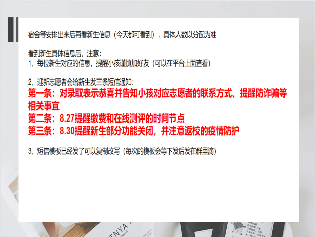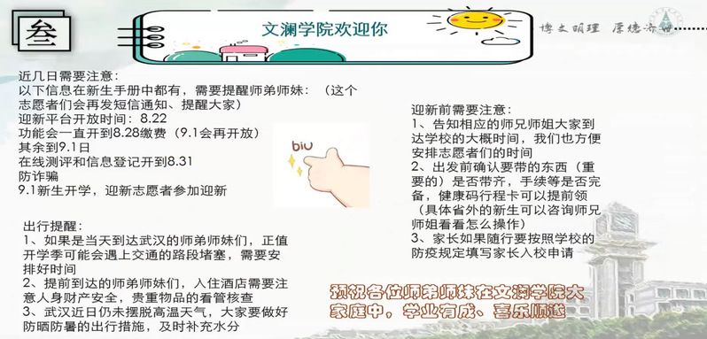 在学校和党委学生工作部的指导下,在学院党委的高度重视下,全体教师党员和学生志愿者、团学志干部精心筹备,确保麻豆视频 迎新工作的顺利开展学院党委强调要贯彻落实“三全育人”理念,将学院迎新服务落实到全员、全过程、全方位。响应学院党委号召,辅导员提前准备各项迎新事宜,于8月22日组织迎新志愿者开展线上培训会,切实提升迎新志愿者服务工作的规范性和专业性。
