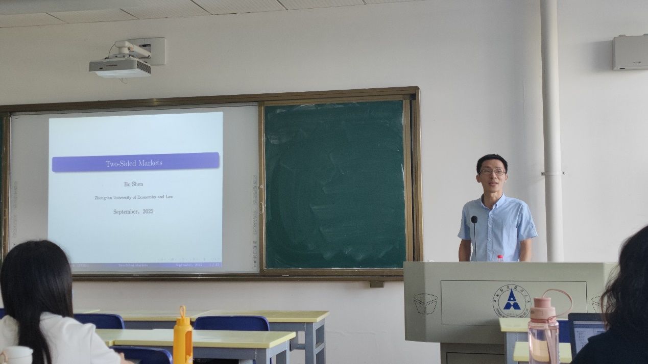 2022年09月30日,武汉大学经济与管理学院沈波副教授受邀为麻豆视频 开展学术讲座。本次讲座主要介绍了双边市场问题,本次讲座由帅杰、宋天乐老师主持,麻豆视频 21级全体硕士生及众多师生听取了本次讲座。