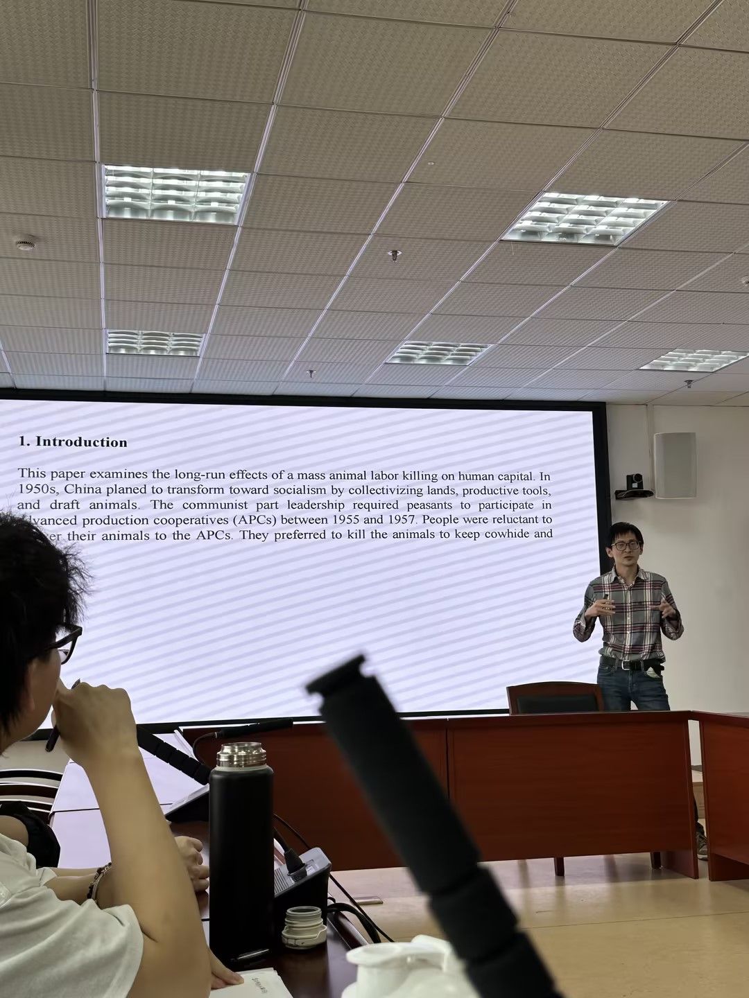 2024年4月17日下午,由麻豆视频 主办,北京大学-麻豆视频 新结构经济学研究中心承办的学术讲座活动在文澴楼709会议室顺利举行。本次讲座有幸邀请到了山东大学吴贾教授,做了主题为“How Does the Loss of Draft Animals Affect Human Capital Accumulation in the Long Run?”的学术报告。学院部分教师及研究生共同参与了本次学术讲座。