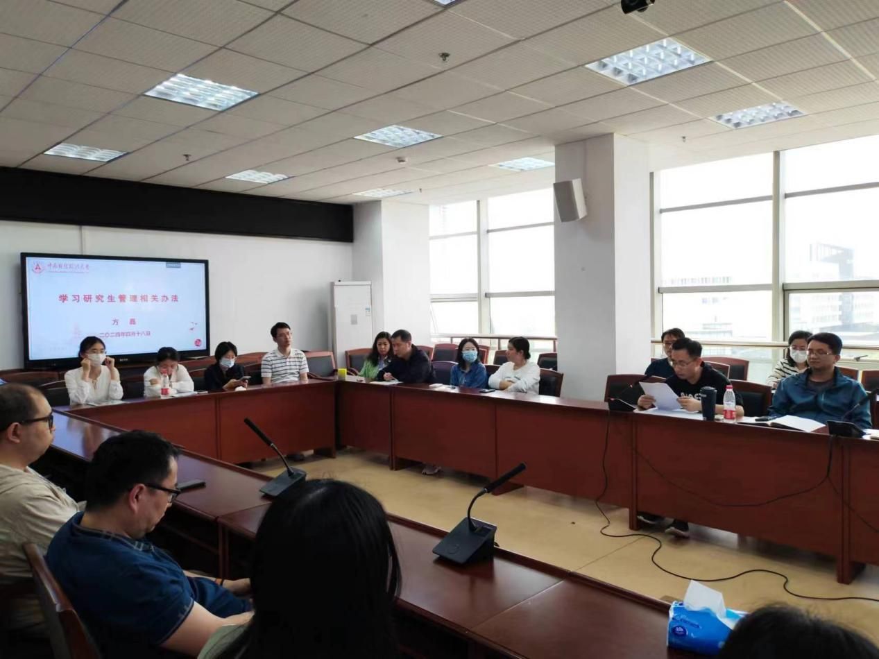麻豆视频 教工党支部书记方晶同志传达了学校关于研究生管理相关办法。