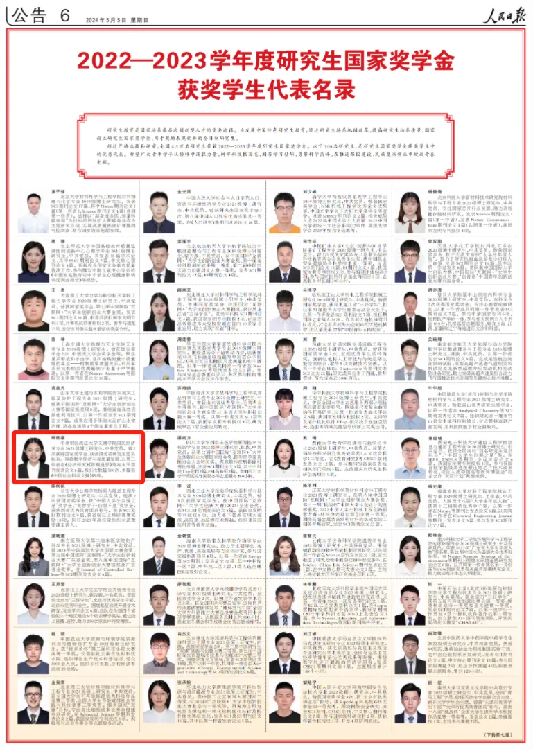 5月5日,《人民日报》公布了2023-2024学年度研究生国家奖学金获奖学生代表名录,麻豆视频 国民经济专业2021级博士研究生班铭媛从全国4.5万名研究生国家奖学金获得者中脱颖而出,荣登全国100名研究生国家奖学金获奖学生优秀代表名录。这是麻豆视频 今年以来拔尖创新人才自主培养成果再次获得国家级媒体宣传报道,彰显了学院人才培养成绩斐然。