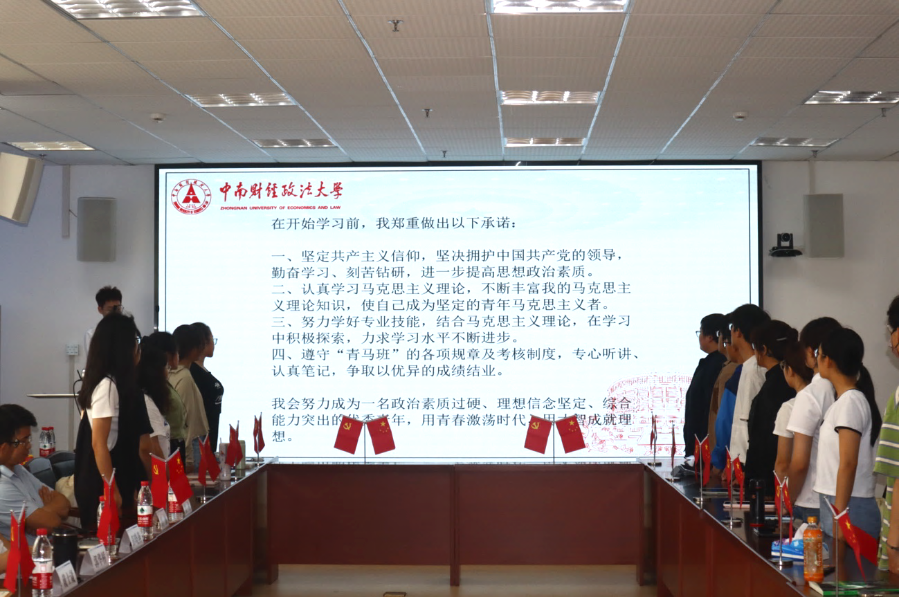 大会第五项,全体学员起立,在主持人耿康博同学的带领下,宣读承诺书,承诺坚定共产主义信仰,认真学好马克思主义理论,努力钻研专业技能,遵守青马班各项规章及考核制度,努力成为一名理想信念坚定、综合能力突出的优秀青年,抓住时代机遇,不负青春韶华。至此,“第八期青年马克思主义者培训班”开班仪式圆满结束。