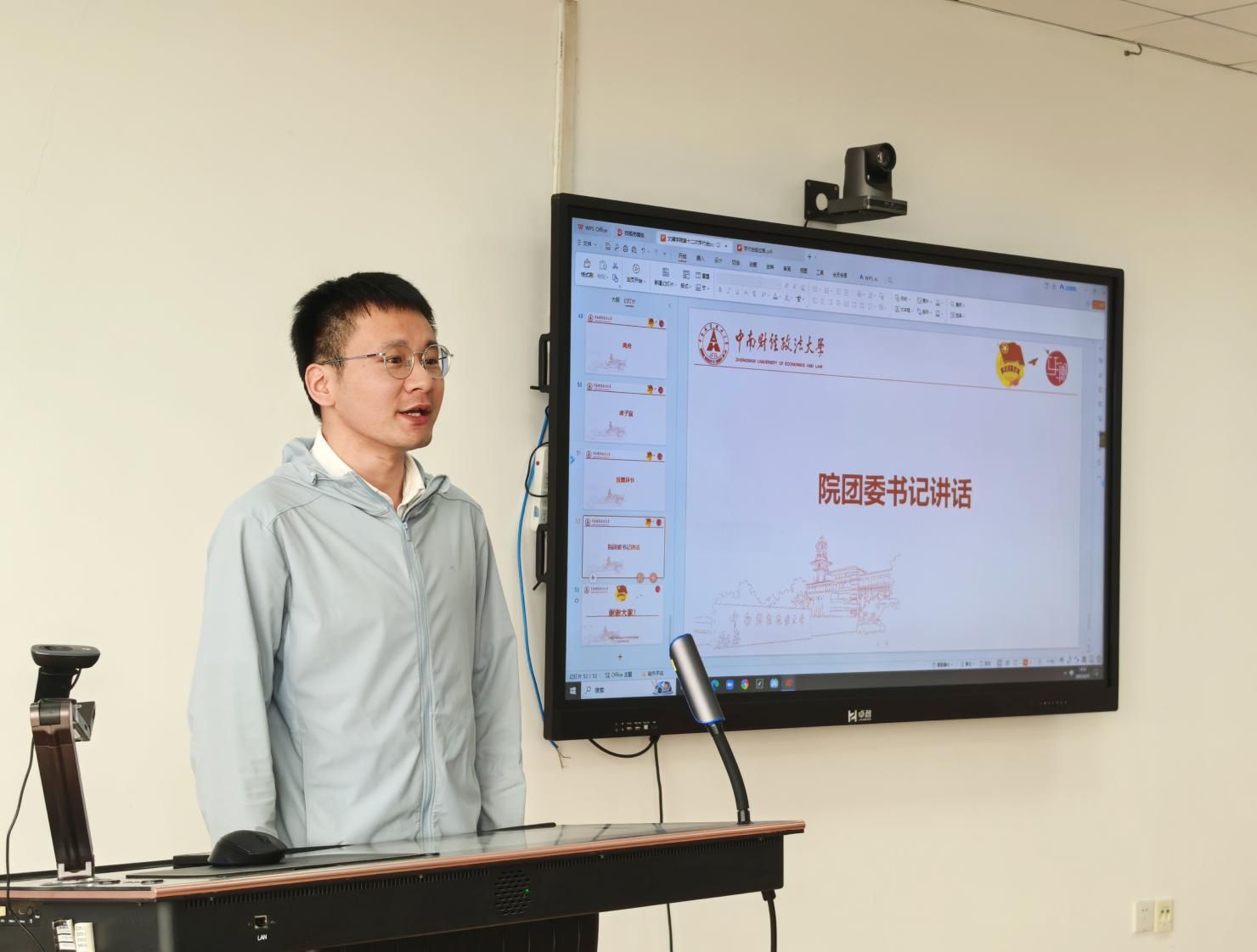 最后,院团委书记戴士崴老师发表讲话。讲话总结了过去一年的可喜成绩,鼓励大家继续在团学志大家庭共同努力,做求真务实的践行者、破立并举的革新者、知行合一的引领者。