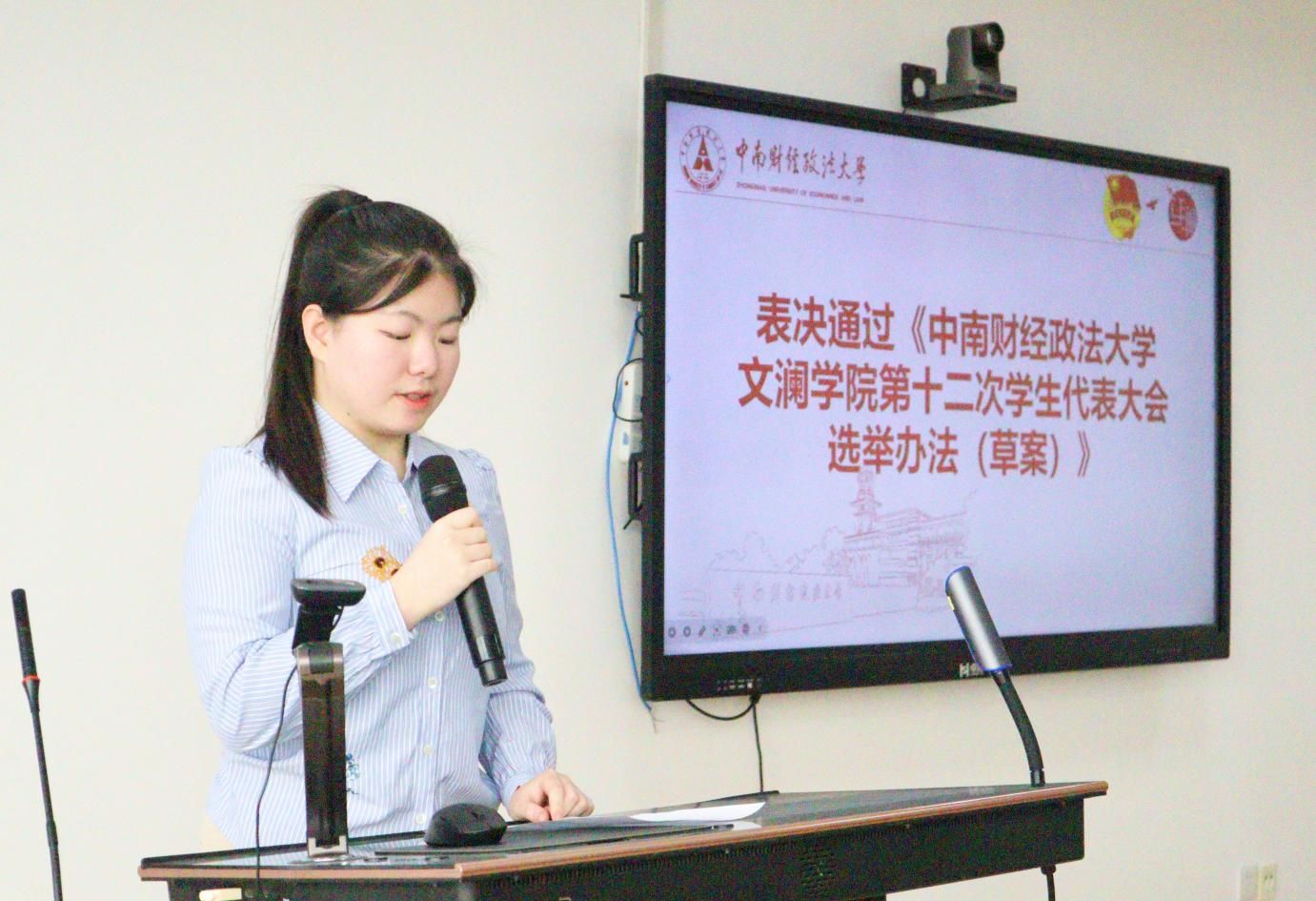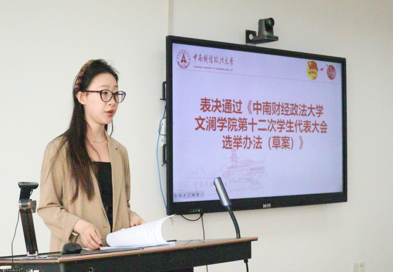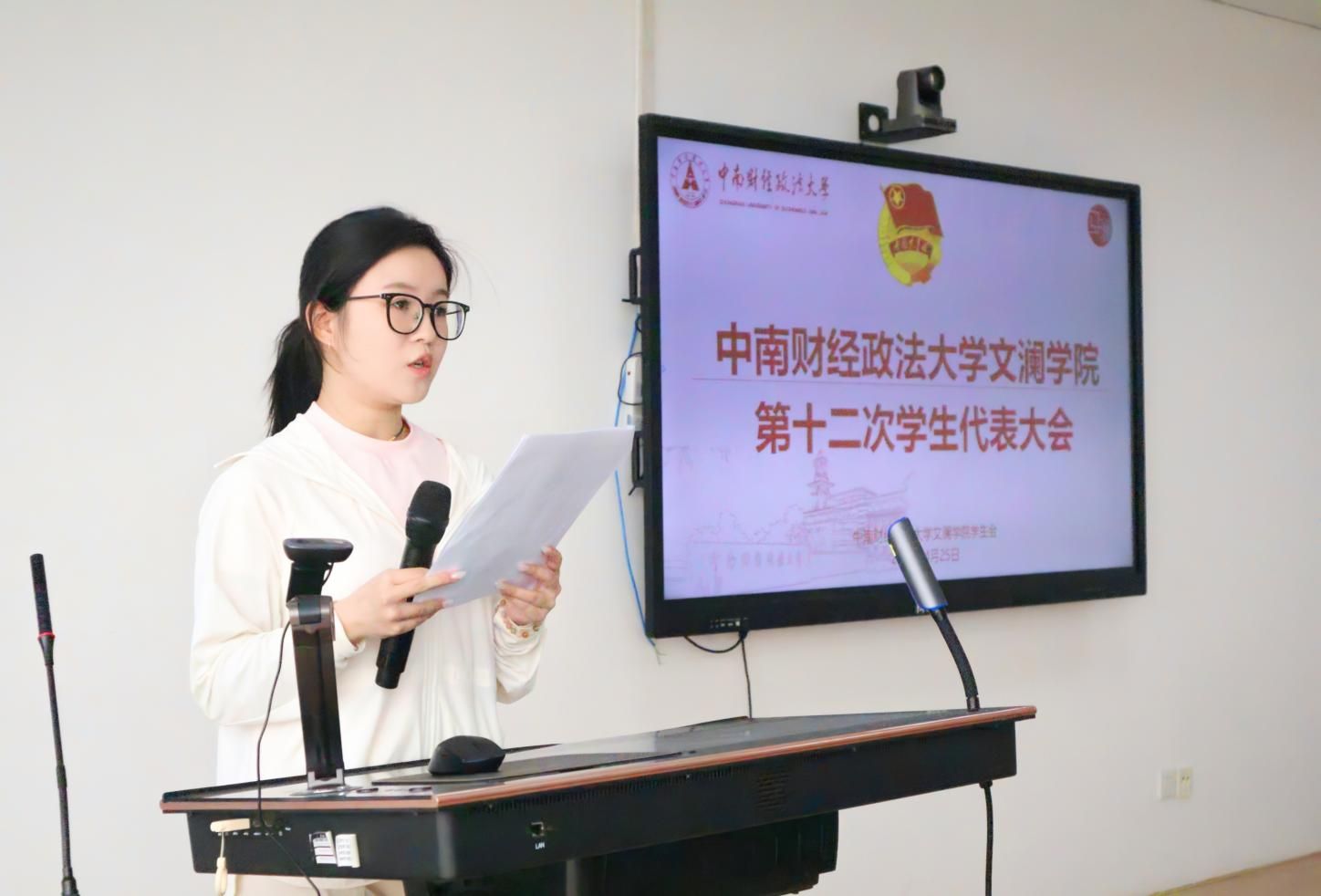 随后,学生会主席团成员陈思奕作《麻豆视频 第十二次学生代表大会提案征集工作报告》。
