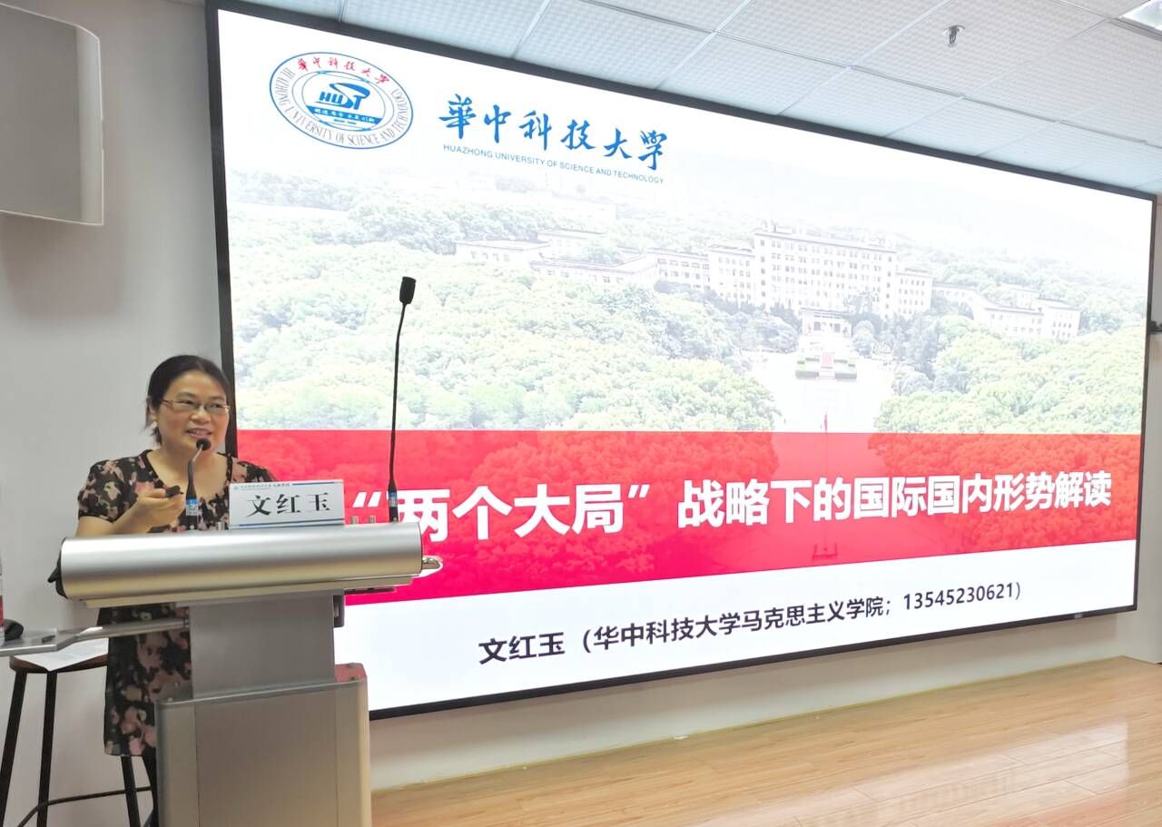 而后,华中科技大学文红玉教授进行理论授课,主题为《 “两个大局”战略下的国际国内形势解读》。文教授通过对国际规则和国际形势重大变化的深度剖析,从政治、经济、文化等多个维度解读世界格局的演变趋势,引导学员们深刻认识当今中国正处于中华民族伟大复兴的关键时期,世界需要中国理念、中国智慧、中国方案,鼓励学员们以全球视野和战略思维看待问题,在时代浪潮中找准自身定位,肩负起时代赋予的使命。