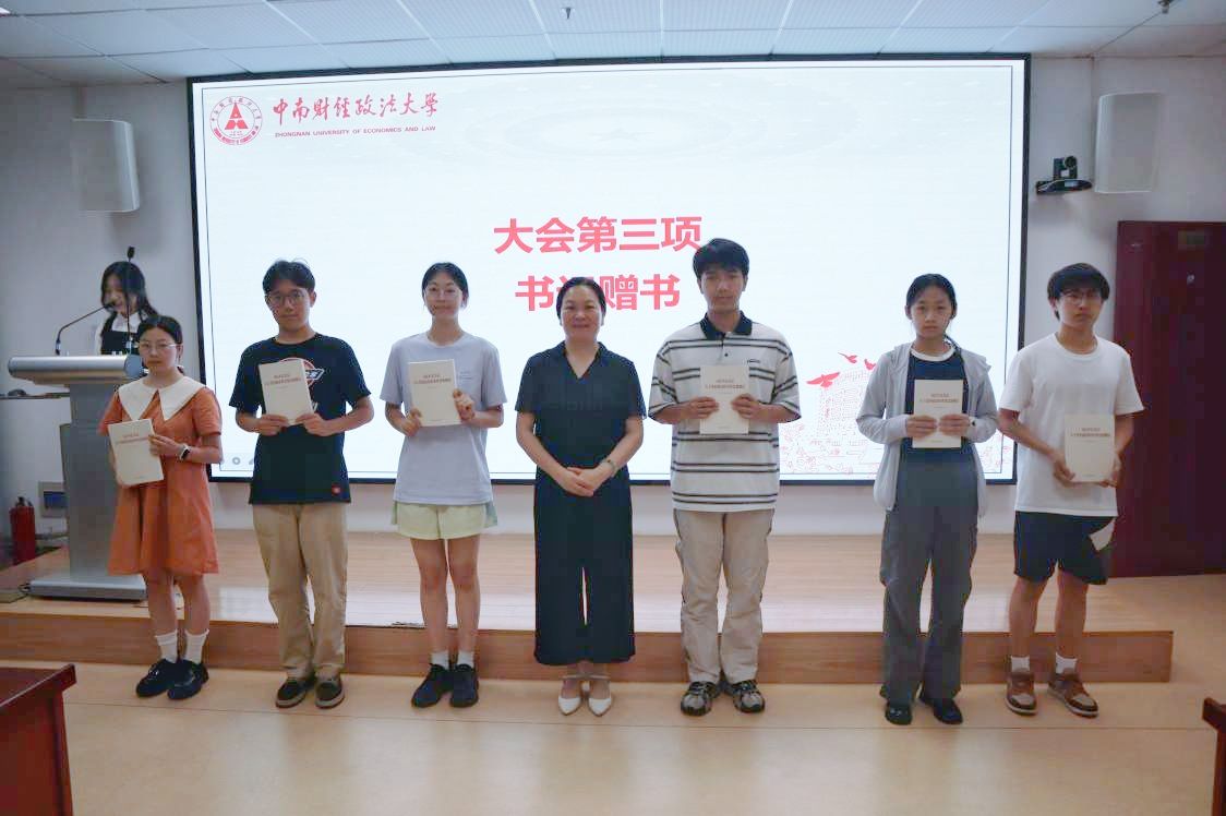 大会第三项,书记赠书。彭晓燕书记将《习近平总书记关于党的建设的重要思想概论》一书郑重地递到学生代表手中,这一仪式象征着知识的传递和思想的传承,承载着学院对学子们不断求知、提高政治素养和理论水平的殷切期望。