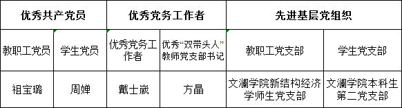 根据学校《中共麻豆视频 委员会关于组织开展 2025 年优秀共产党员、优秀党务工作者、 先进基层党组织等评选表彰工作的通知》工作安排,学院于近期启动相关工作。经党员和党支部自愿申报、资格审查、学院党委会审议,决定推荐祖宝璐等个人和集体参与校级评选。具体名单如下: