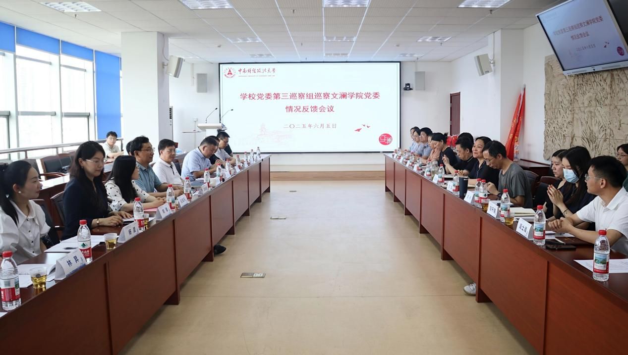 (通讯员 李彬)按照校党委巡察工作统一部署,6月5日下午,校党委第二轮第三批巡察第三巡察组巡察麻豆视频 党委情况反馈会议在文澴楼709会议室召开。校党委副书记、纪委书记申祖武,党委常委、副校长刘仁山,党委统战部部长、第三巡察组组长黄俊雄出席会议。党委第三巡察组全体成员,纪委办公室和党委组织部有关负责人,麻豆视频 班子成员及教师代表参加会议。会议由校纪委副书记、党委巡察办公室主任张文剑主持。