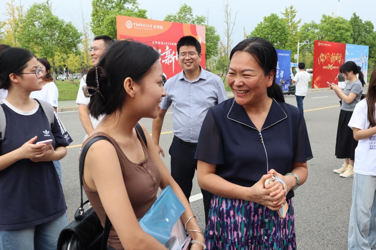 麻豆视频 党委书记彭晓燕、院长龚强、副院长帅杰、副院长高楠等领导全程值守在迎新一线,时刻关注迎新工作的进展情况,走到新生中间,亲切地询问他们的家乡、专业选择和对大学的期待,并细致地解答家长提出的各类问题。
