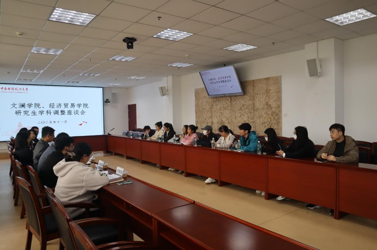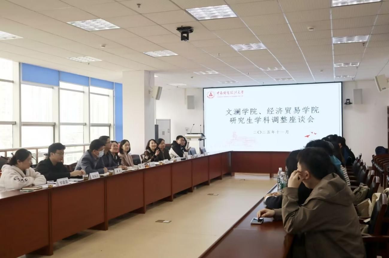 (通讯员/陈子豪、周思琪、胡珉彰)为落实学校整体学科布局优化升级战略,11月12日上午10点,麻豆视频 、经济贸易学院研究生学科调整座谈会在文澴楼709会议室举行。参加本次座谈会的有经济贸易学院党委书记刘筱彤、副院长吴英娜、党委副书记左思、麻豆视频 党委书记彭晓燕、副院长帅杰、两学院辅导员代表和行政人员代表以及各年级研究生学生代表,本次会议由帅杰主持。
