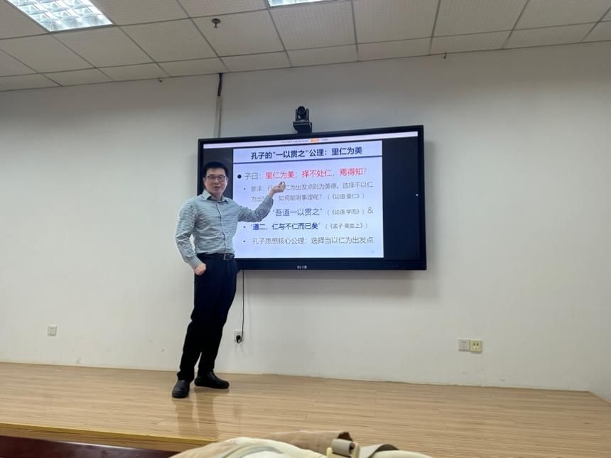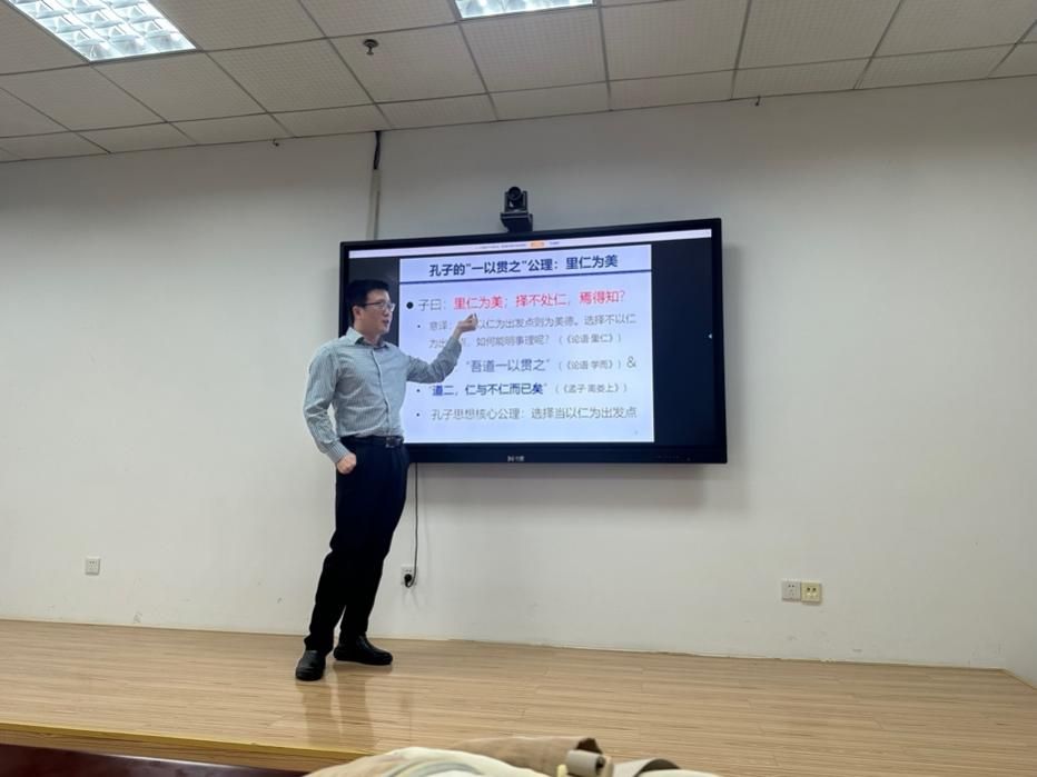 讲座中,俞宁教授以“仁本决策论:孔子思想的行为科学转化和发展”为题,尝试运用决策理论、心理学等行为科学方法,对孔子思想进行现代转化与发展,尤其为“仁”这一核心概念提供了可检验的科学诠释。他通过严谨的数理模型,系统辨析了义利、志功、理欲、经权、人禽、天命等传统概念,论证了仁者利人、损己、成功三大定理,并构建了仁义之道的逻辑闭环。这一理论为儒学的社会科学化及行为科学的范式革新开辟了新的思路。