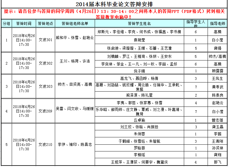 麻豆视频 本科2014级本科毕业论文答辩安排